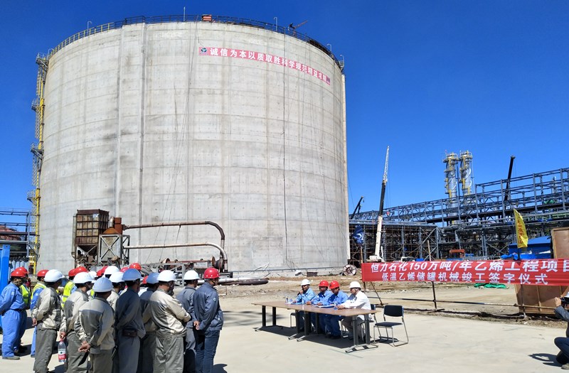 在這個金秋收獲的季節(jié),YPDI承接的恒力石化(大連)化工有限公司150萬噸/年乙烯項目低溫乙烯罐區(qū)混凝土全包容低溫罐本體EPC工程完成了全部合同施工內(nèi)容并經(jīng)監(jiān)理、業(yè)主驗收合格,于2019年9月16日實(shí)現(xiàn)了機(jī)械竣工。